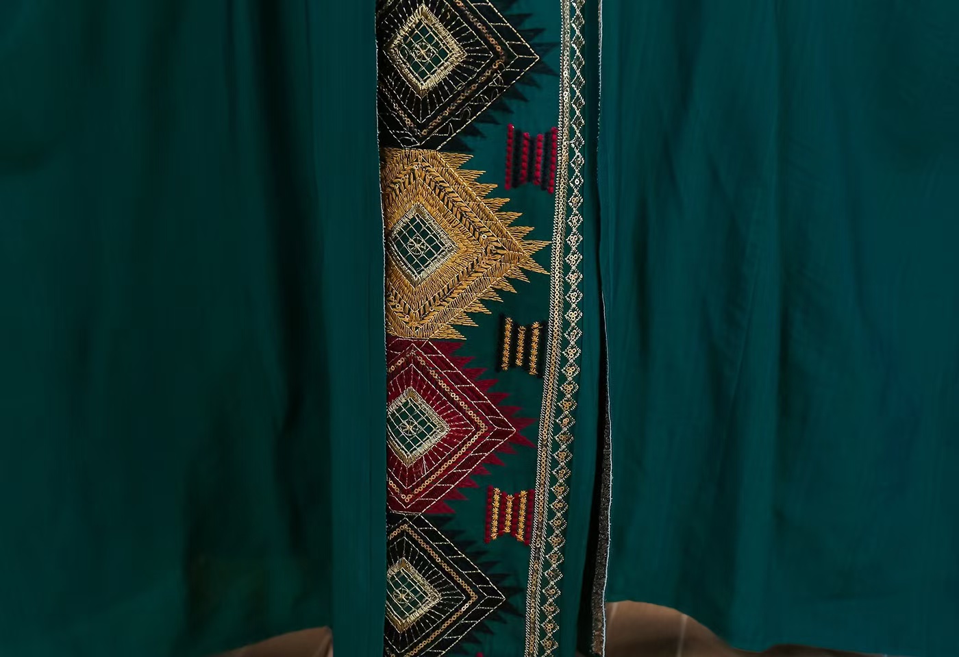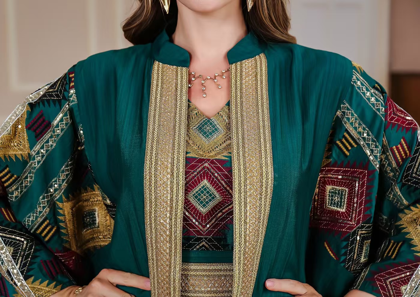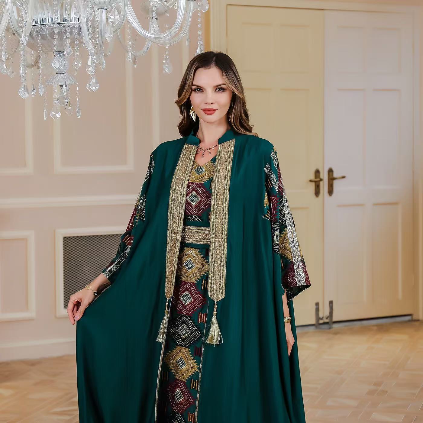 SunWaqi Abaya Light Luxury Evening Dress 2-piece set. Dark Green