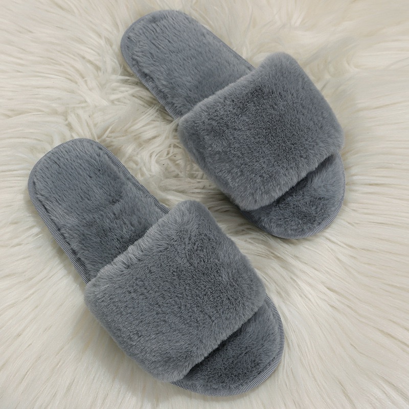 SunWaqi Ladies Plush Flat Slippers. Gray